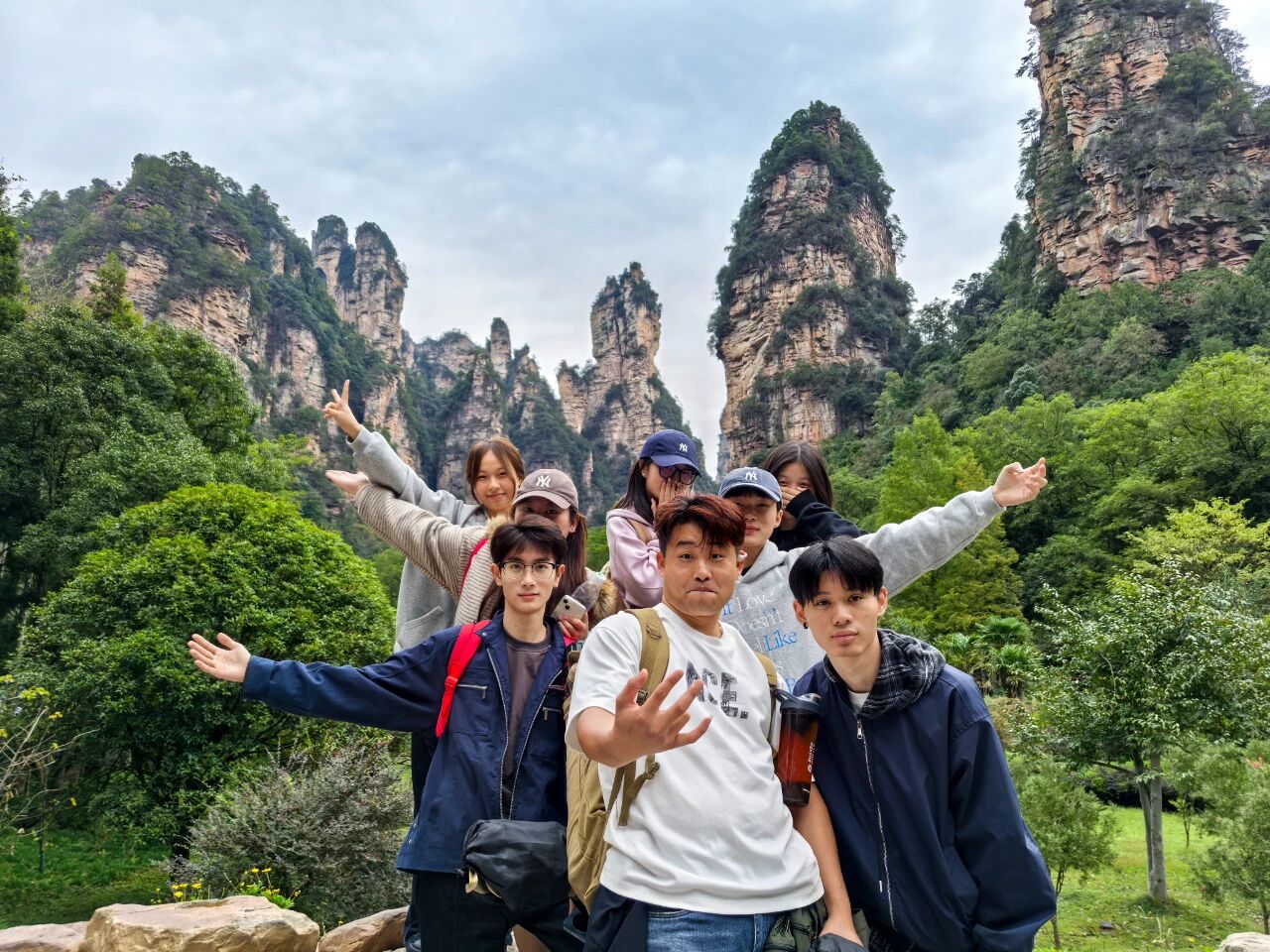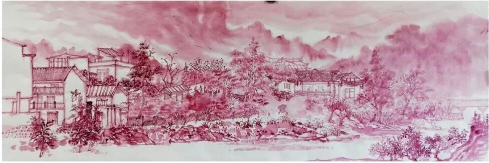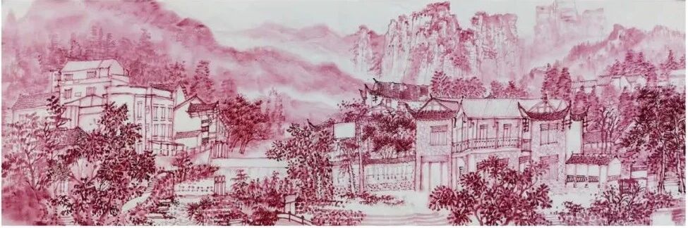 今年10月,杜庆磊和文学与创意学院的老师一起带着学生去张家界写生。他边拿着画笔边向同学们解释:“红色在传统中国山水画中常蕴含祥瑞、雄浑之意,用它既能凸显张家界峰林的质感与立体感,又能在视觉上先声夺人,区别于青绿、水墨等常规山水画的表现形式,给人新颖且深刻的视觉与精神体验……”