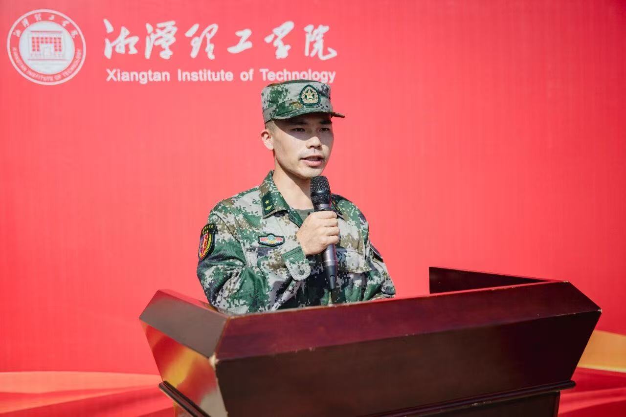 “我们全体教官将以最专业的素养、最负责的态度、最温暖的陪伴,与你们并肩同行!”军训教官谢庆林在教官代表发言中郑重承诺,将在军训工作中,“传承荣光,以身作则,做精神的引领者”“科学施训,倾情投入,做成长的守护者”“追求卓越,赋能未来,做梦想的奠基者”,以湘潭理工学“知行合一,精益求精”的校训为指引,与全体新生一道,在火热的军训场上挥洒汗水,淬炼青春,书写属于湘潭理工学子的“硬核”荣光。