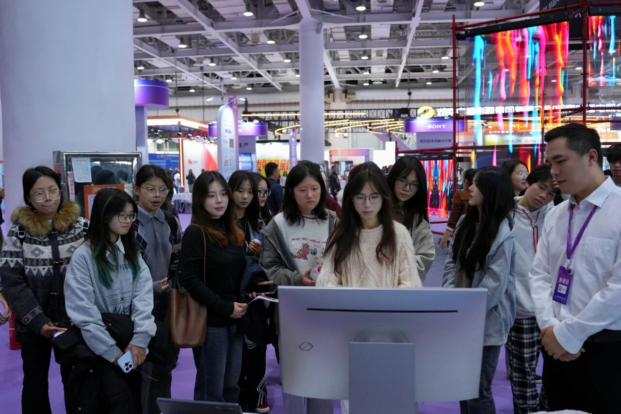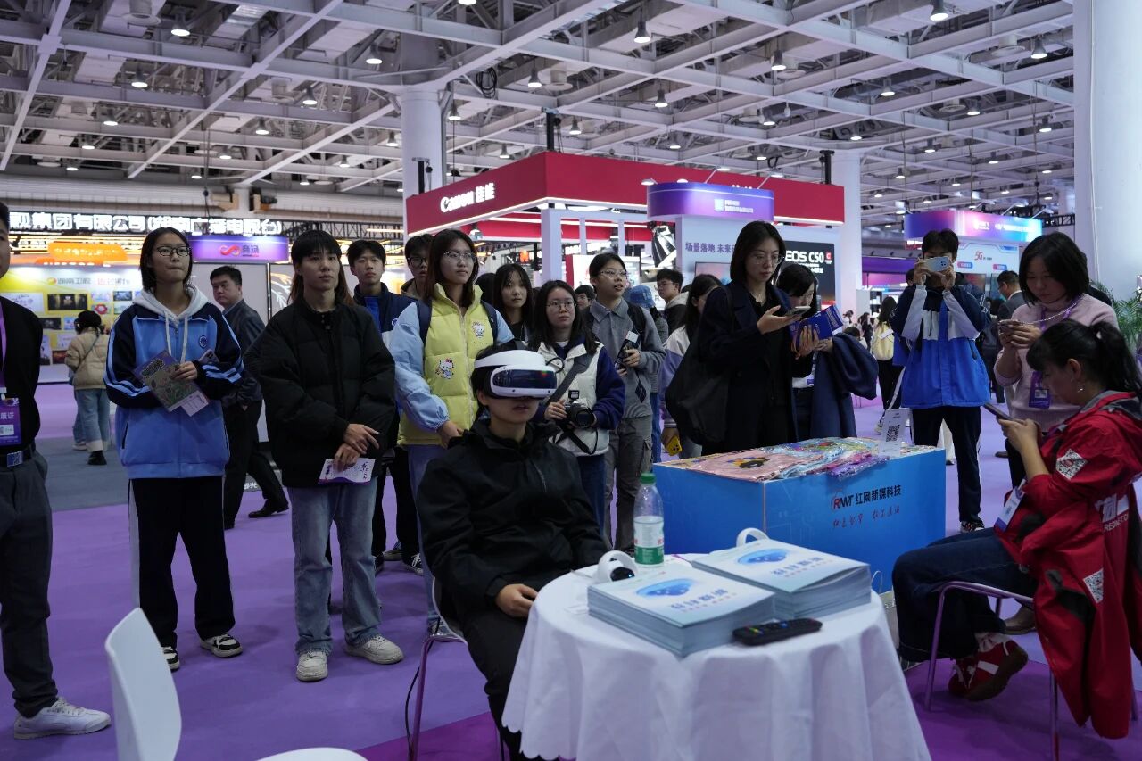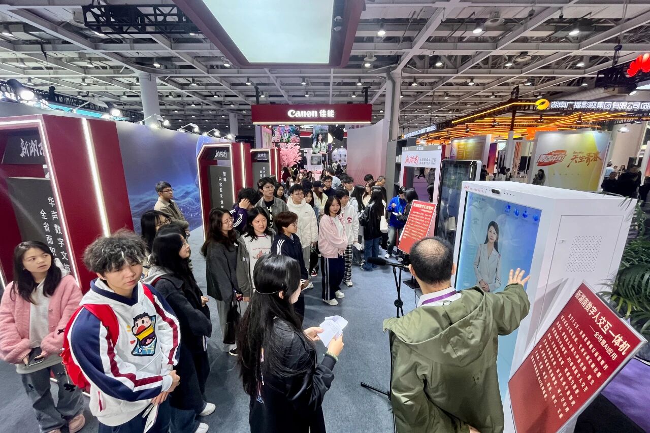 “我们正在从‘人找信息’走向‘信息识人’。”2025中国新媒体技术展现场,湖南广电展区的讲解员向湘潭理工学院新青年媒体中心的校园记者介绍: