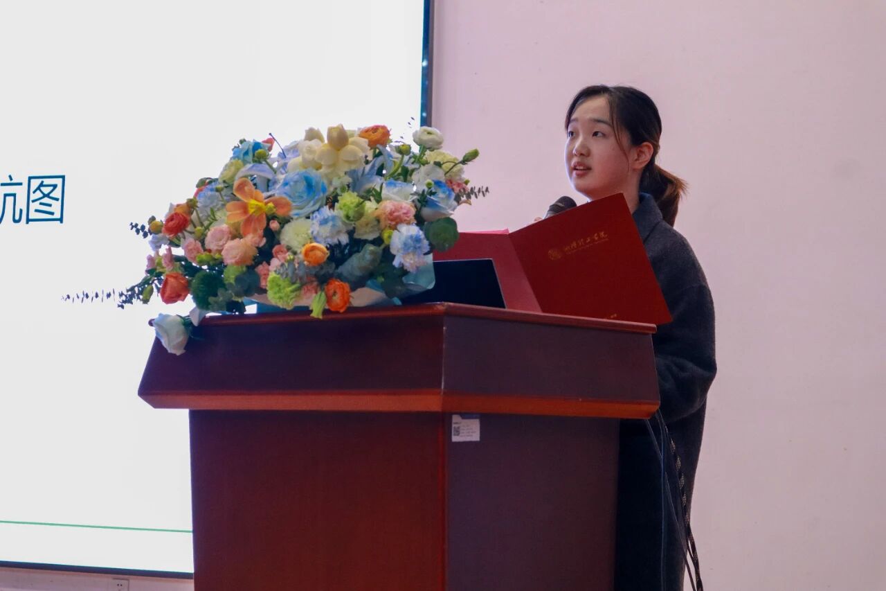 “去年我和大家一样迷茫,后来把规划落地成每周练3道财务题,才懂早行动,比晚规划更有用,也想劝大家:别等想清楚,先从一件小事开始做。”数智管理学院大四的学生毛欣源同学以“地图”“导航”“行动”三个关键词结合自身省赛备战经历,阐述了如何绘制包含兴趣、能力、价值观的人生地图,建立动态校准的目标与路径导航,并强调行动是实现规划的唯一桥梁,引发了在场新生的深刻共鸣。