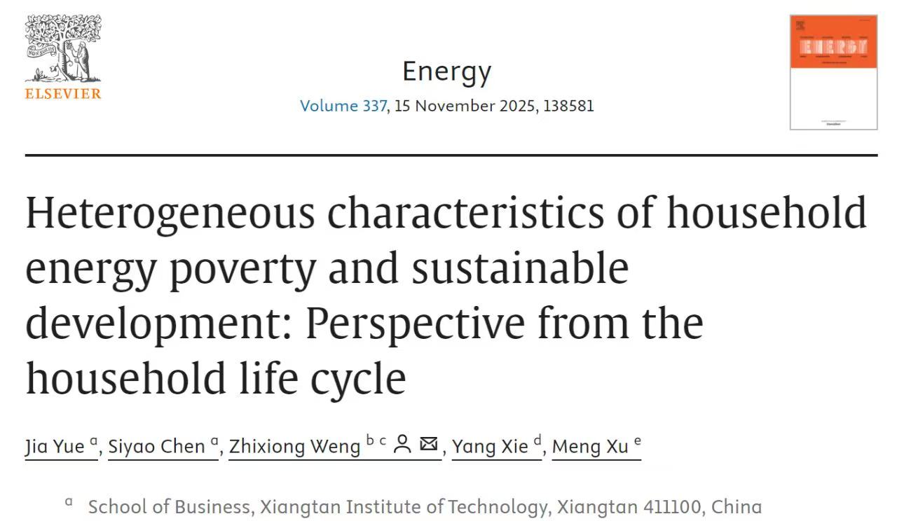 近日,湘潭理工学院数智管理学院副院长岳佳在国际顶级期刊《Energy》上在线发表了题为“Heterogeneous characteristics of household energy poverty and sustainable development: Perspective from the household life cycle” 的研究论文。岳佳为第一作者,湘潭理工学院为第一署名单位。