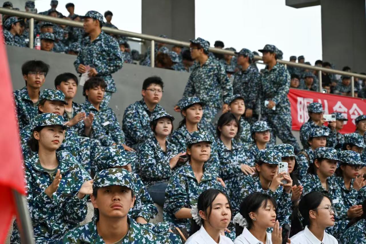 在2025级新生军训成果展示暨总结表彰大会上,赵婵书记代表学校党委向圆满完成军训任务的全体新生表示热烈祝贺,向为军训辛勤付出的教官和老师们致以崇高敬意与衷心感谢。