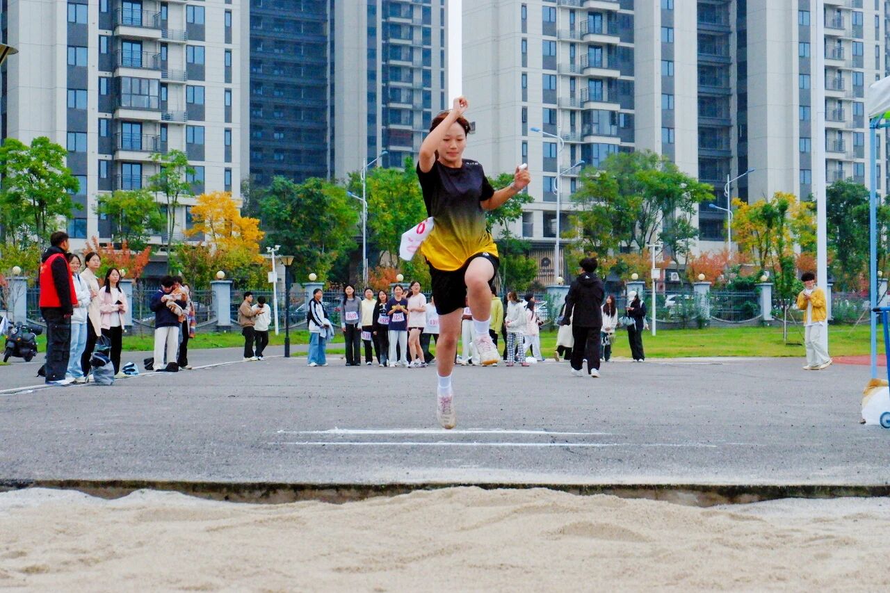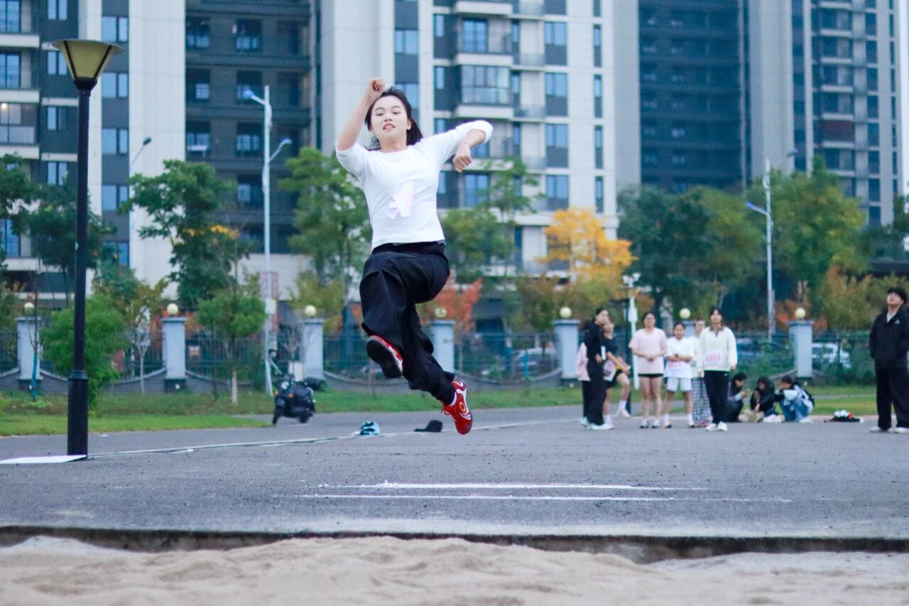信息管理与信息系统2401班的饶钧超同学,在甲组男子三级跳远项目中以11.44米的优异成绩勇夺桂冠,打破校纪录。“挺开心的,这可是校纪录!” 他坦言,成绩离不开平日高强度训练打下的坚实基础。谈及赛场心得,他分享:“紧张时就深呼吸,让动作像训练时一样自然,告诉自己我能行。”这份精准的自我把控与不懈努力,让他在强手中脱颖而出,也为大家树立了勇于挑战的榜样。