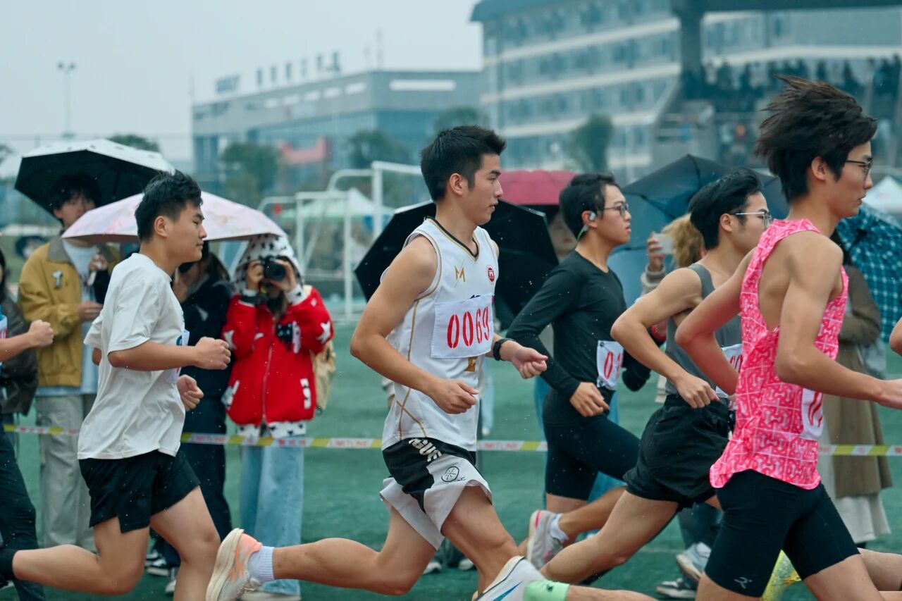 “这是一个里程碑,也是一个新的起点。”来自潭州书院28栋2班的阿合那尔,在得知自己打破我校100米纪录、荣获第一名时激动地说。对于他而言,突如其来的大雨浇不灭内心的澎湃与热血 —— 枪声响起,摆臂、蹬腿、冲刺,奋力奔向终点!决赛尾声的意外摔倒,紧紧牵动着在场观众的心。事后,阿合那尔回忆道:“这算是一种另类的成长,虽然摔倒了,但在雨中全力奔跑的过程酣畅淋漓。” 同学们第一时间递来的纸巾与碘伏,让他忘却了一时的疼痛,深深感受到了集体的温暖。“短跑是一项全能运动,它考验爆发力、耐力与反应力的协同配合。” 这份成绩,离不开阿合那尔平日里的热爱与坚持训练。未来,他也将带着这份拼搏劲头,向多姿多彩的大学生活奋勇奔去。