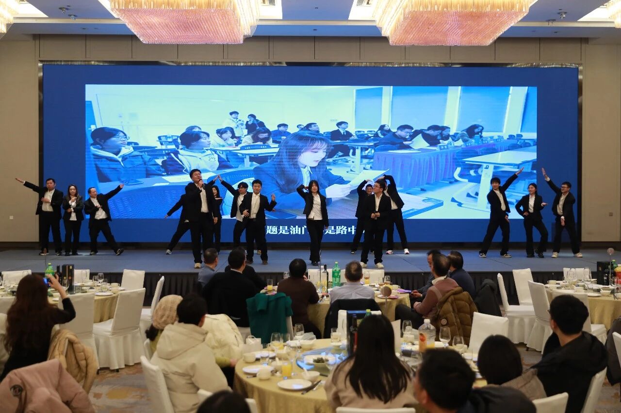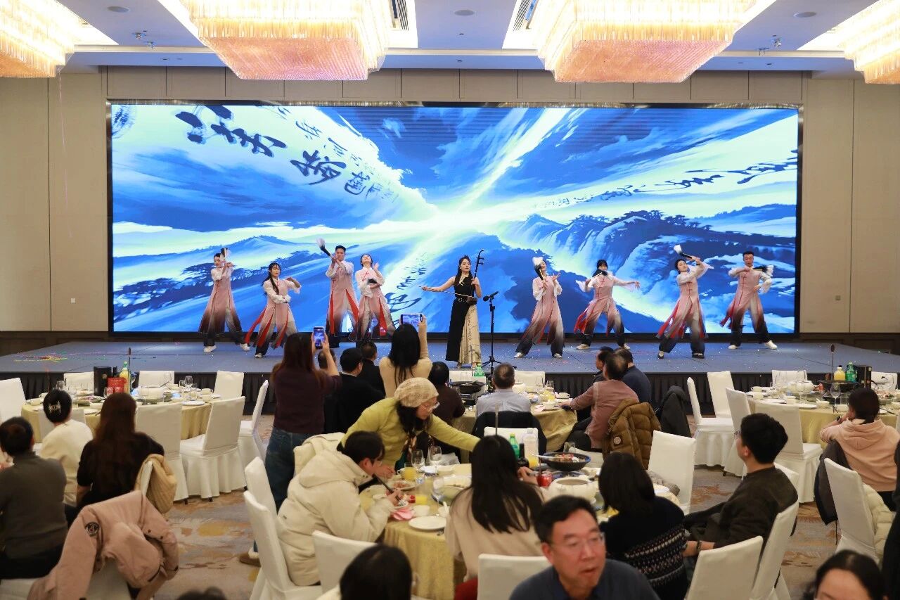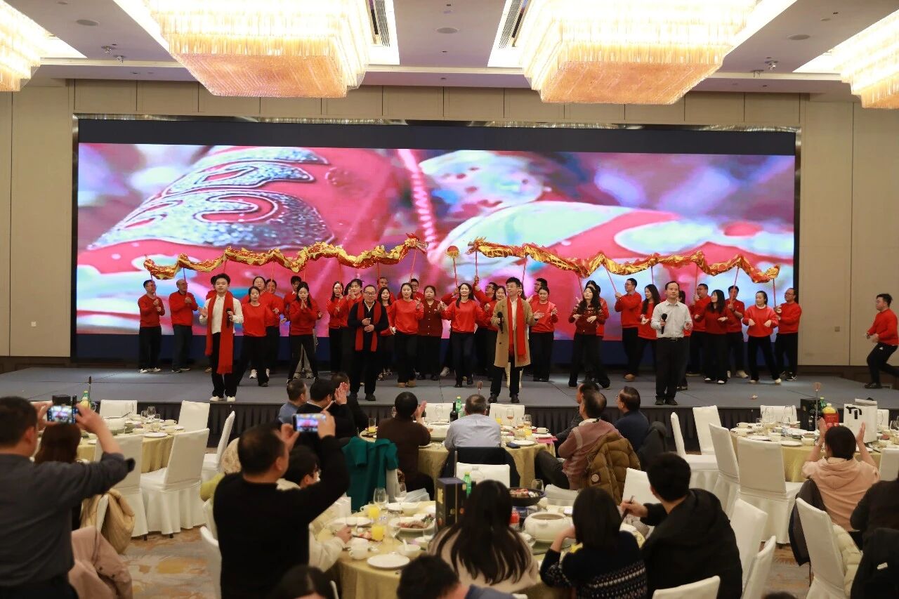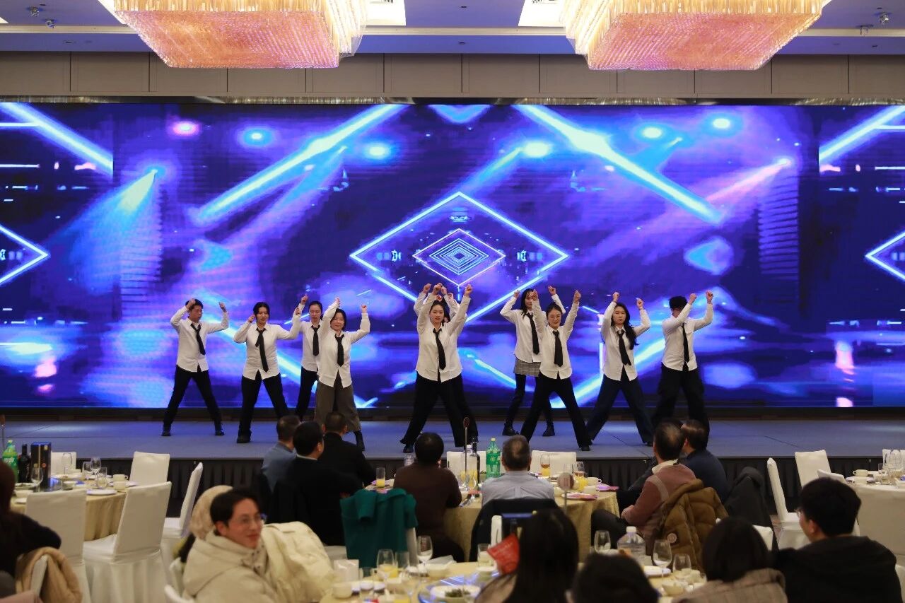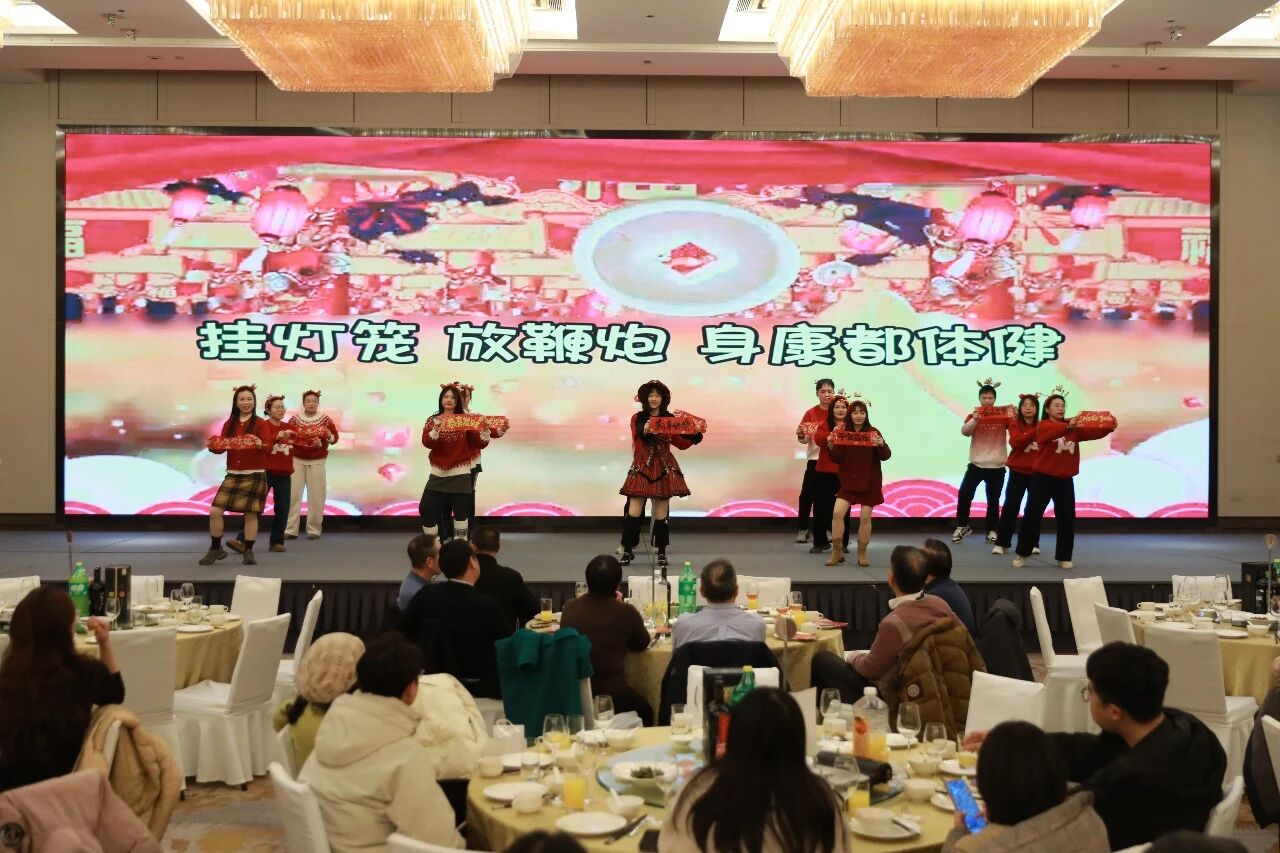 整台年会节目表演气氛热烈、精彩纷呈。欢快的氛围中,大家频频举杯、互致问候,表达对新年的美好祝愿和“以奋斗为舟,以创新为帆,与时代同行,与未来共舞”的信念与豪情。