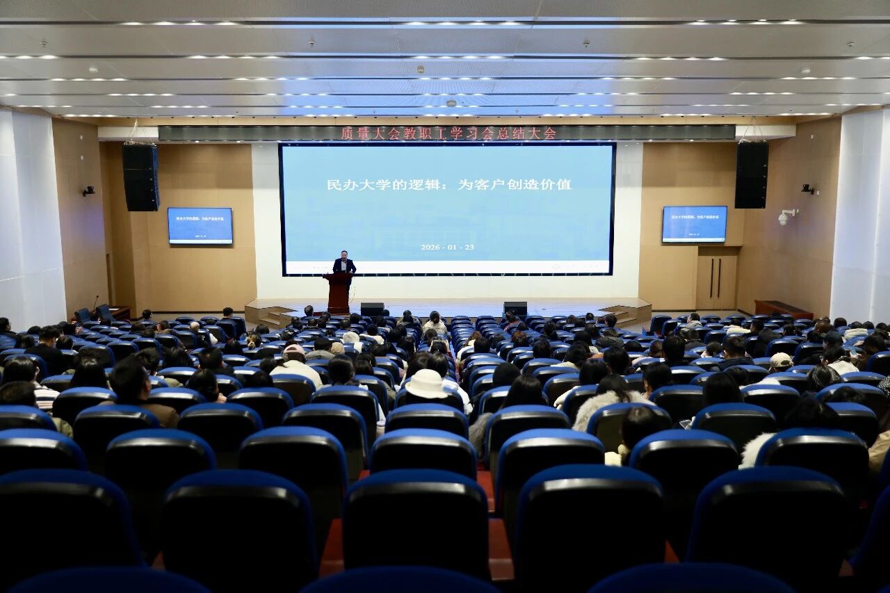 袁校长以《民办大学的逻辑:为客户创造价值》为题作了精彩的辅导报告。他要求,全体教职工要认真学习贯彻习近平新时代中国特色社会主义思想,坚持“四个面向”,落实立德树人根本任务,切实回答好“培养什么人、怎样培养人、为谁培养人”这一根本性问题;要深入践行CFAP创新人才培养理念,树牢客户思维、质量思维、品牌思维,以主动担当作为,为学生的成长成才、产业的发展进步更好赋能。